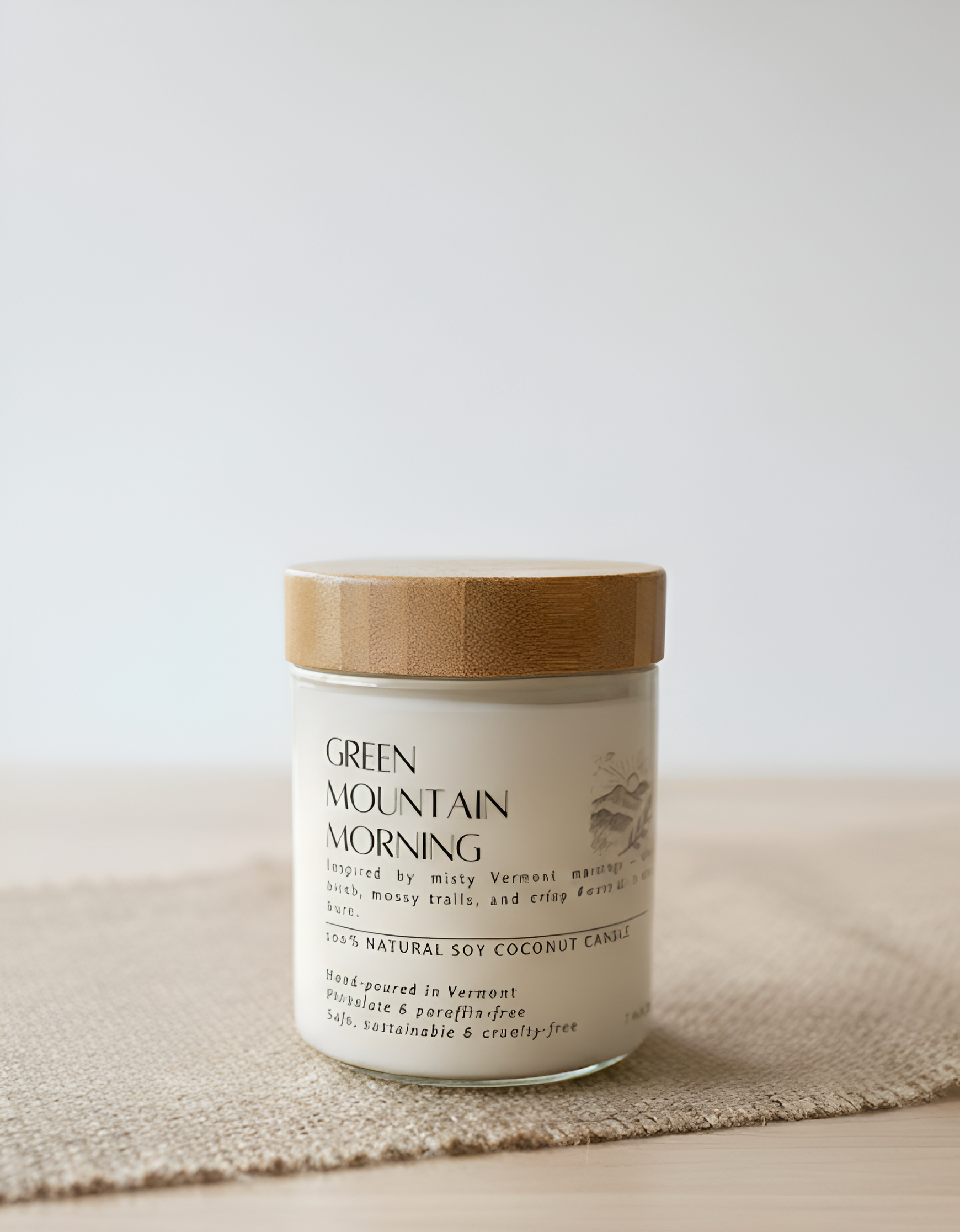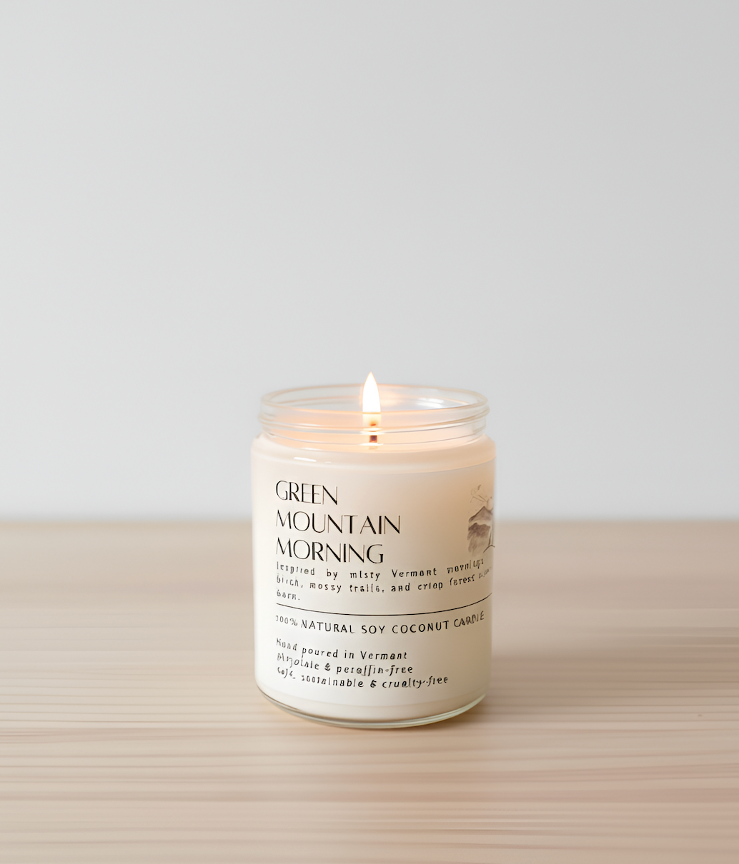 Inspired by early mornings in the Green Mountains — when the mist hangs low and the world feels still — Green Mountain Morning is a clean, invigorating scent that captures the essence of a fresh forest breeze. Bright top notes of eucalyptus and mint awaken your senses, while earthy pine and cypress settle in like a deep grounding exhale. A soft base of tonka bean adds warmth and comfort, evoking the feeling of a cozy cabin nestled among the trees.
